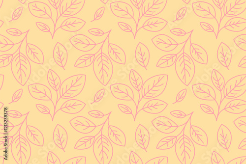 Charming pastel pink leaf pattern on a soft yellow background. Perfect for textile design, wallpaper, branding, and website backgrounds. Simple, elegant, and versatile.