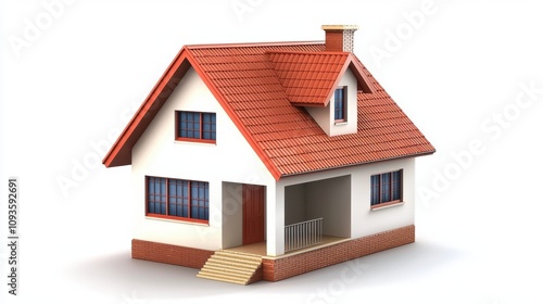 Charming Residential Home with Red Roof and White Exterior, Ideal for Architecture Concepts, Real Estate Illustrations, and Property Marketing Projects