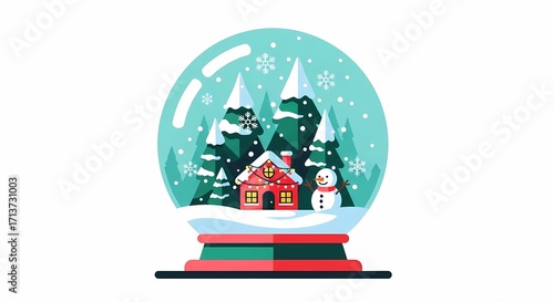 Charming Snow Globe Featuring Snowman and Cozy House in Winter Scene
