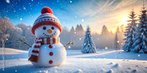 Charming Snowman Basking in Serene Sunset Winter Landscape