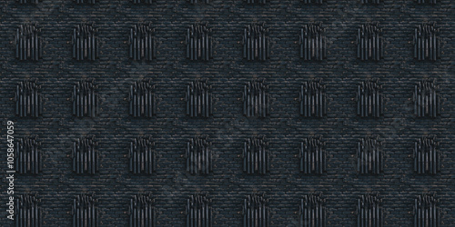 Charred Black Brick Texture: Dark black bricks with rough, charred edges and a distressed appearance, giving a bold, dramatic feel for industrial or gothic themes