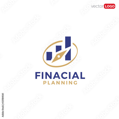 chart with compass, financial planning icon/symbol/Logo Design Vector Template Illustration
