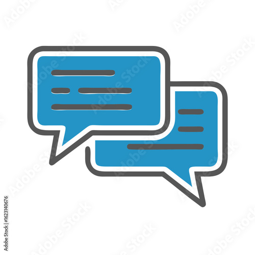 Chat bubble icon representing messaging and communication in blue on a white background