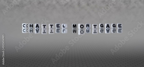 chattel mortgage word or concept represented by black and white letter cubes on a grey horizon background stretching to infinity