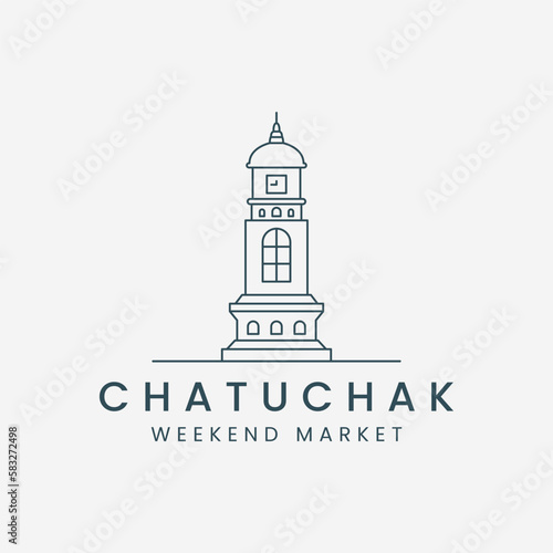 chatuchak line art logo vector template illustration design. thailand market icon building design