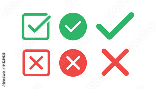 Check Mark and Cross Icon Set for Approval, Rejection, Validation, Error Message, Interface Design, UX Elements, Voting, and Forms