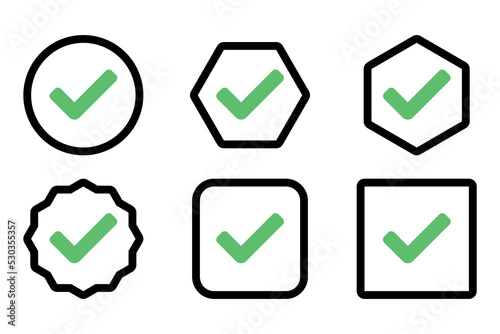 Check marks Icon Set, Tick marks, Accepted, Approved, Yes, Correct, Ok, Right Choices, Task Completion, Voting. - vector mark symbols in green.