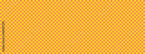 Checkerboard banner. Salmon and Yellow colors of checkerboard. Small squares, small cells. Chessboard, checkerboard texture. Squares pattern. Background.