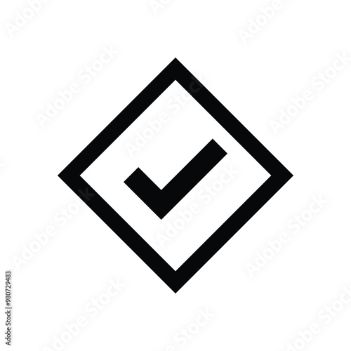 Checkmark Icon inside a diamond shaped box, Approval or Done Symbols