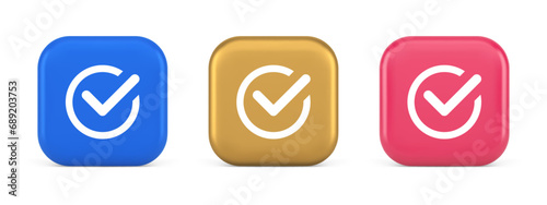 Checkmark in circle done approved button ok acceptance positive vote enter 3d realistic icon