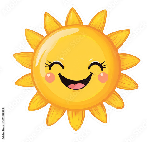 Cheerful and smiling cartoon sun with cute blush and a happy expression on transparent background