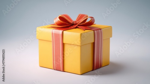 Cheerful birthday gift box tied with ribbon bow centered on a clean backdrop. The lid slightly open suggesting