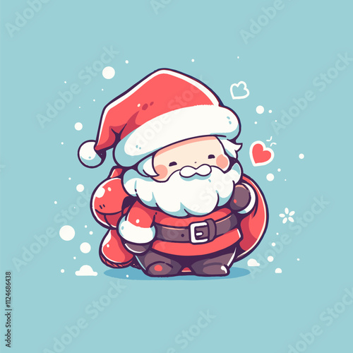 Cheerful Cartoon Santa with a Sack on Blue Background. Cute Santa Vector.