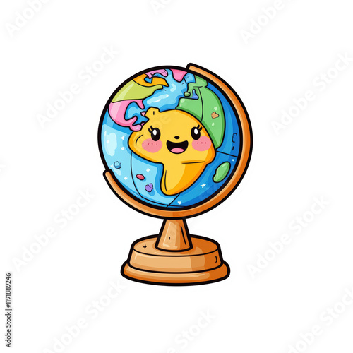 Cheerful Kawaii Globe Sticker for Geography Enthusiasts