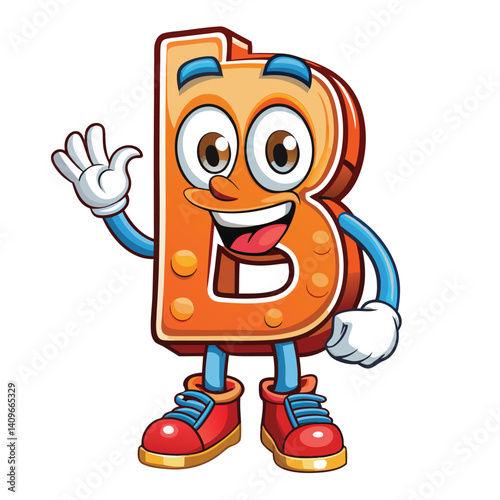 Cheerful letter B character waving