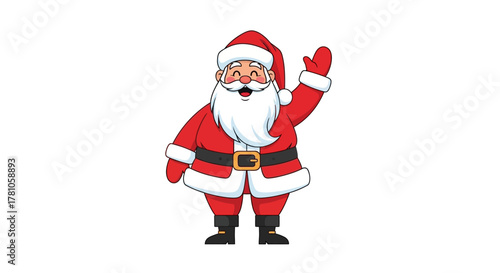 Cheerful Santa Claus waving hello for Christmas greetings and holiday fun, bringing the magic of the season with his iconic red suit and jolly smile