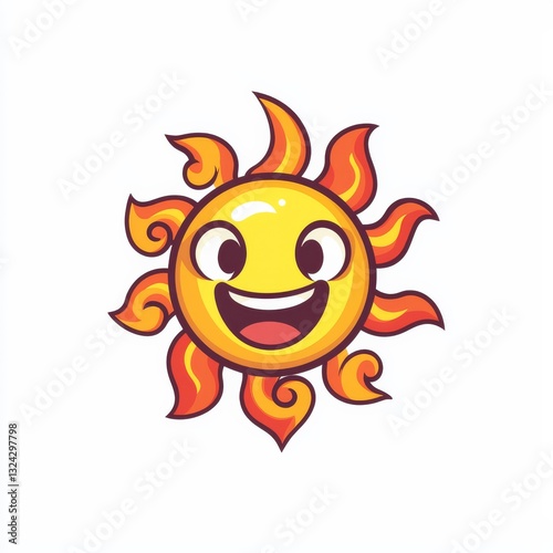 Cheerful Sun Character with Smiling Face and Radiating Rays