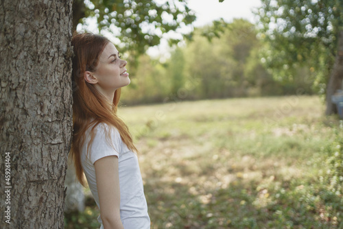 cheerful woman near the tree nature Lifestyle summer