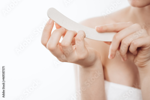 cheerful woman with a white towel on her head face cream skin care