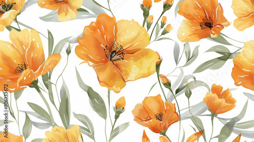 Cheerful Yellow and Orange Flowers on a White Background