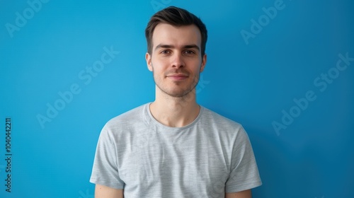 Cheerful Young Man with Relaxed Posture Against Bright Blue Background