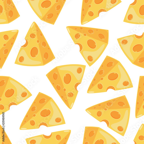 Cheese slice vector seamless pattern on a white background for wallpaper, wrapping, packing, and backdrop.