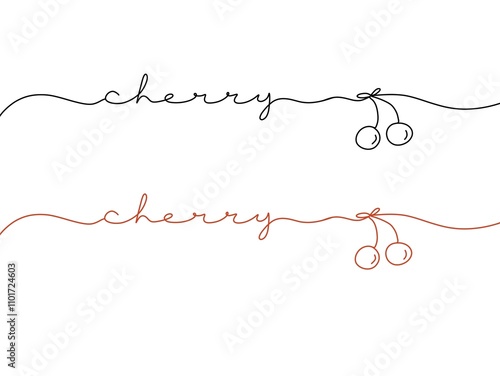 Cherry flavour monoline text. One line continuous concept Cherry juice banner. Line art cherry short phrases illustration.
