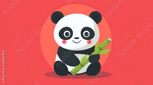 Chibi panda emoji sitting with big eyes and holding bamboo isolate other color background