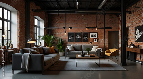 Chic Industrial Loft Apartment Showcasing Exposed Brick Walls and Metal Beams for an Urban Vibe