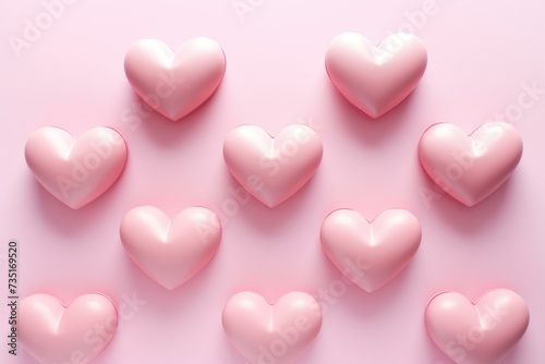 Chic Minimalistic hearts pastel pink. Multiple glossy little hearts on pink surface. Generate ai