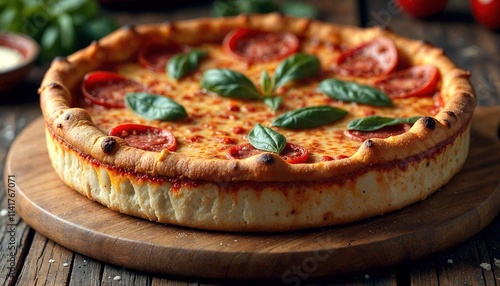 Chicago-Style Deep-Dish Pizza on Wooden Board