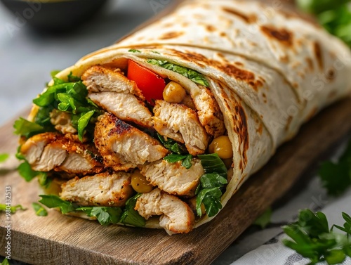 Chicken and hummus in a traditional and flavorful shawarma wrap - ai