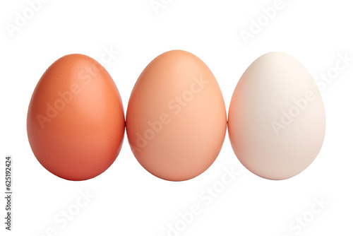 Chicken eggs isolated on a white background, side view, close-up. AI Generation