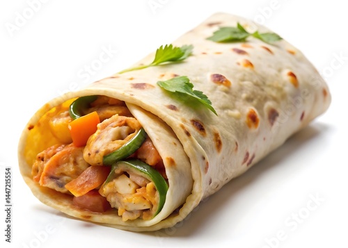 Chicken pratha roll isolated on white background