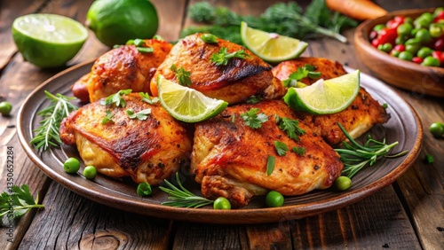 Chicken thighs roasted to perfection with a zesty blend of paprika and lime,tender, herbs, tender, herbs, dinner, juicy, paprika