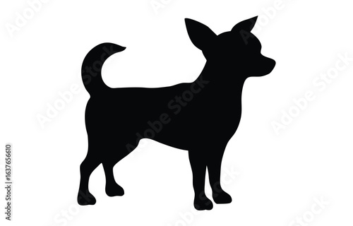 Chihuahua dog silhouette, Black standing chihuahua dog icon flat vector illustration