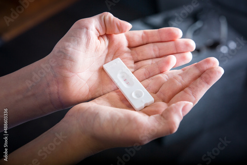child hold a postive covid 19 test in his hands