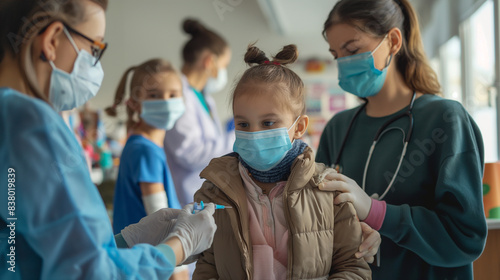 Child Wellness Checks: Pediatricians conducting pediatric wellness exams and providing vaccinations for children at a designated area of a community health fair