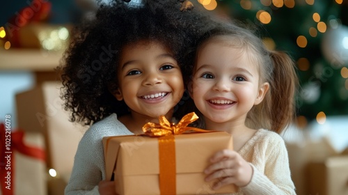 Children opening presents on Christmas morning, showcasing excitement and happiness during the holiday season