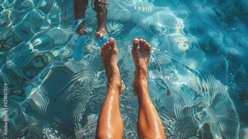 Children's legs relaxing in the lake on a hot summer day.