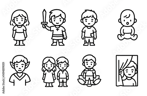 Children's outline icons set – linear, silhouette, playful and cute designs