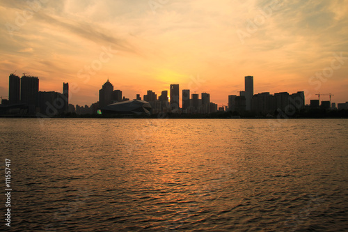 China's Shenyang city building at sunset