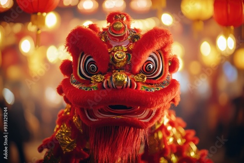 Chinese dragon costume with gold foil decoration, blurred background