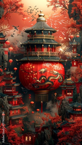 Chinese lantern. Chinese traditions. Minimalistic background. Generated AI.