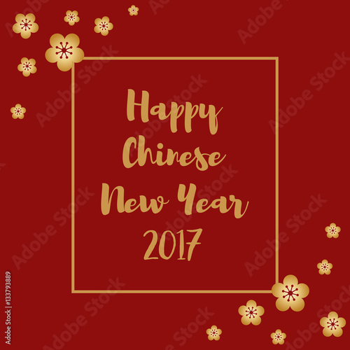 Chinese New Year 2017 Cards with golden calligraphy and chinese peach blossom decoration background Vector Illustration.