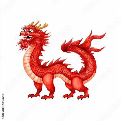 Chinese new year zodiac concept. Vibrant red dragon with a fierce expression and flowing mane.
