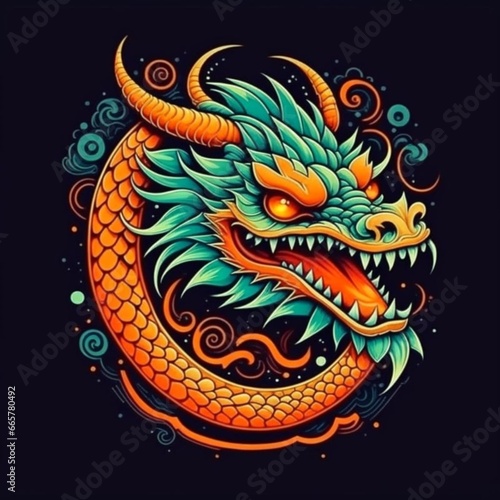 Chinese Year of the Dragon. Original vintage pattern with the image of a realistic oriental dragon on a black background. Chinese symbol of 2024 new year. Illustration.