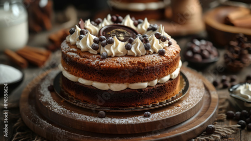 Chocolate and Vanilla Layer Cake with Cream Topping