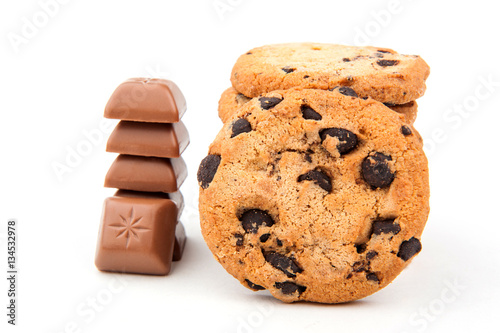 Chocolate chip cookie on white background