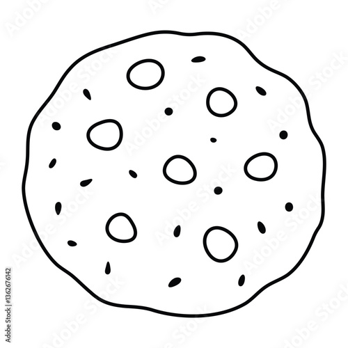Chocolate chip cookie vector illustration. Hand-drawn dessert in doodle style. Black line art isolated on white background.